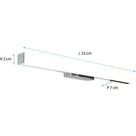 Inspirée de l’art déco, plus fine et discr&eagrave;te que la réglette GAMMA. Dans le même esprit, la réglette ELIA met à l’honneur le design rectangulaire et cubique. Fine, ses bords chromés mettent en valeur le design élégant de cette applique. Peu volumineuse elle s’adaptera à tous types de salle de bain..Dimensions du produit (L x l x h) : 57,5 cm x 9,5 cm x 8,5 cm ; Classe énergétique : A+ ; Poids : 1,3 Kilogrammes ; Watt : 16W ; Batterie(s) / Pile(s) requise(s) : non ; Type de piles : non ; Matière : Aluminium ; Couleur : Chrome ; Couleur de la lumière : Chrome ; Kelvins : 4000K ; Lumens : 1280 ; Etanche : oui ; Indice de protection IP : IP44 ; Technologie :