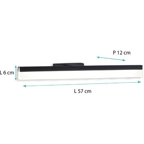 Inspiré des concepts d’art moderne, la réglette GAMMA met à l’honneur le design rectangulaire et cubique. Fine, ses bords chromés mettent en valeur le design élégant de cette applique. Peu volumineuse elle s’adaptera à tous types de salle de bain..Dimensions du produit (L x l x h) : 61 cm x 15 cm x 9 cm ; Classe énergétique : A+ ; Poids : 1,2 Kilogrammes ; Watt : 12W ; Batterie(s) / Pile(s) requise(s) : non ; Type de piles : non ; Matière : Aluminium ; Couleur : Noir ; Couleur de la lumière : Noir ; Kelvins : 4000K ; Lumens : 960 ; Etanche : oui ; Indice de protection IP : IP44 ; Technologie :