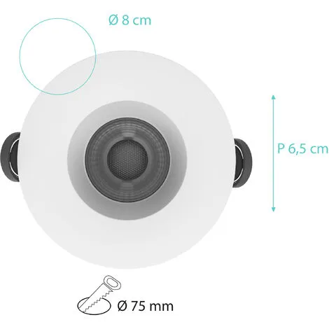 Spot salle de bain STELA Blanc + clips additionnel en aluminium – VOLTMAN -IP65 9W Dimmable 2700à4000K 520Lm – VOM069096.Dimensions du produit (L x l x h) : 9 cm x 7,5 cm x 9 cm ; Classe énergétique : A+ ; Poids : 0,2 Kilogrammes ; Watt : 9W ; Batterie(s) / Pile(s) requise(s) : non ; Type de piles : non ; Matière : Aluminium ; Couleur : Argenté ; Couleur de la lumière : Argenté ; Kelvins : 2700K/3000K/4000K ; Lumens : 550 ; Etanche : non ; Indice de protection IP : ; Technologie :